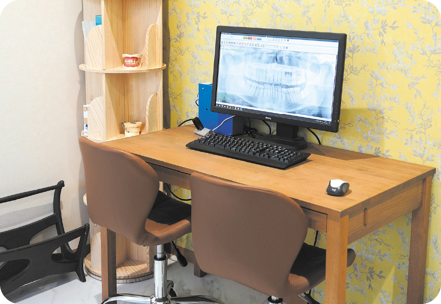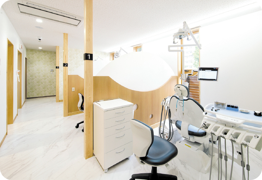 歯科の診療室は、半個室となっており、周りを気にすることなくゆったりした気持ちで治療に専念していただけます。保険適用外の治療には個室もご用意しております。