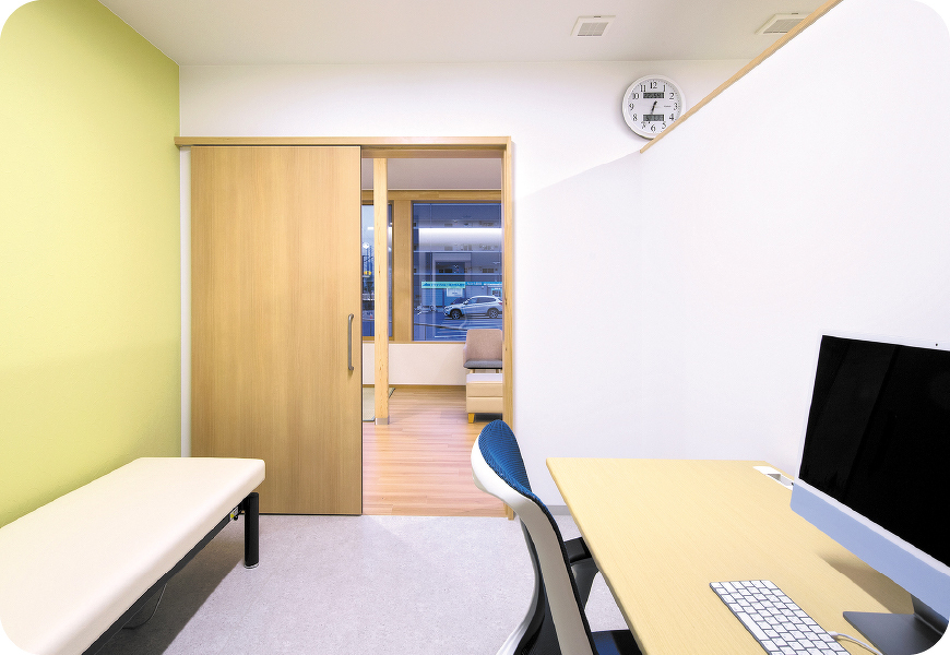 医科の診療室は、患者様の不安やストレスを少しでも軽減できるよう明るい室内となっています。