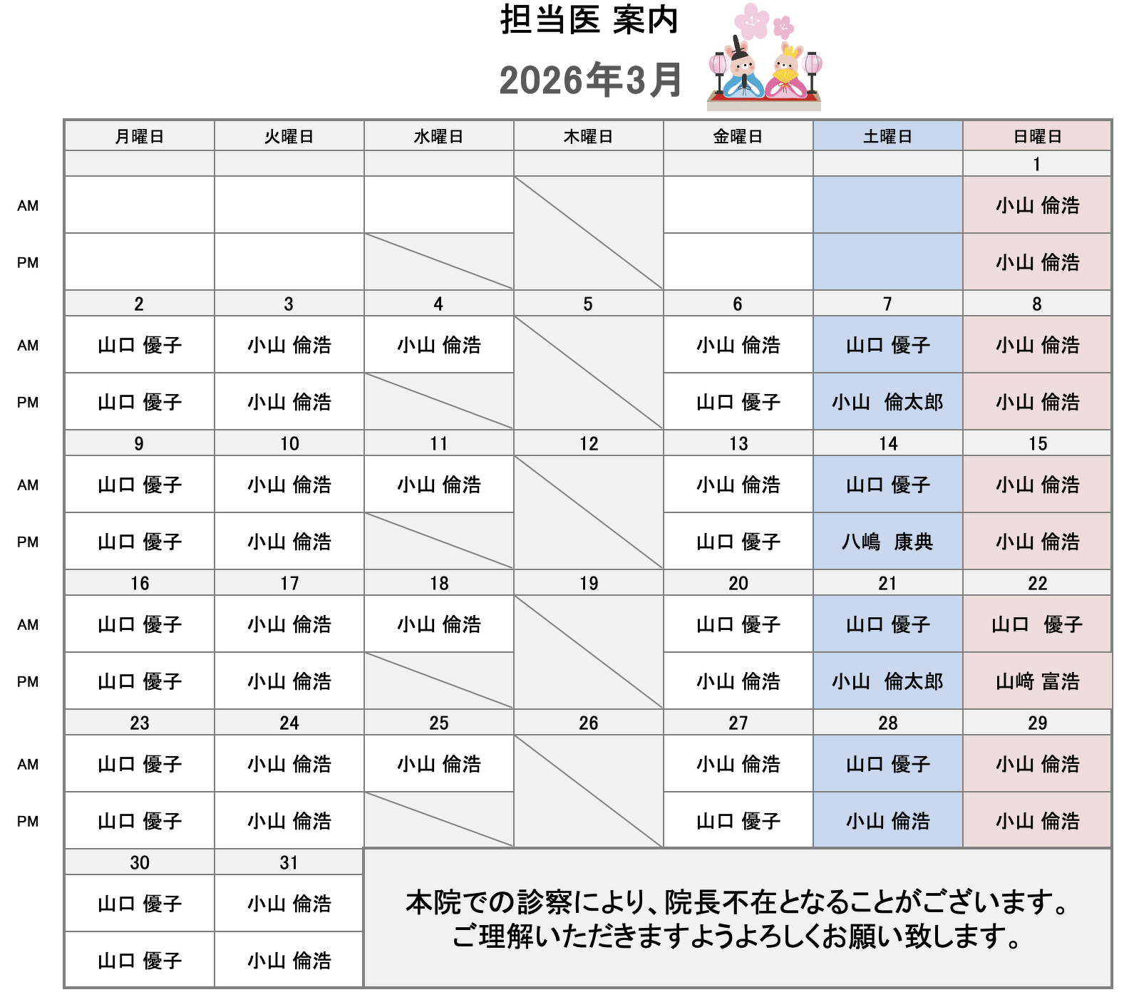 | 診療時間 | 月 | 火 | 水 | 木 | 金 | 土 | 日 | 祝 |